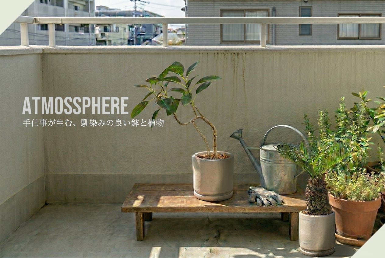 手づくりモルタル鉢が引き立てるオトンナ・ヘレー。無機質な質感と有機的な造形美が融合した、モダンな佇まいの一点物セット|虫発生抑制【全国一律送料850円】