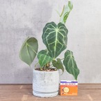 アンスリウム・クリスタリナム ビロード調の葉と繊細な脈模様 おしゃれなモルタル鉢植え