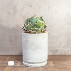 アガベの中でも絶大な人気を誇る「白鯨」。その名の通り、荒々しくうねる白い強棘(きょうし)が、青みがかった肉厚な葉を包み込む姿は、まさに深海の王者のような風格を漂わせます。コンパクトに締まったフォルムと、鋭い鋸歯(きょし)のコントラストは、無骨なモルタル鉢と組み合わせることで、洗練された「飾れるアート」へと昇華します。
